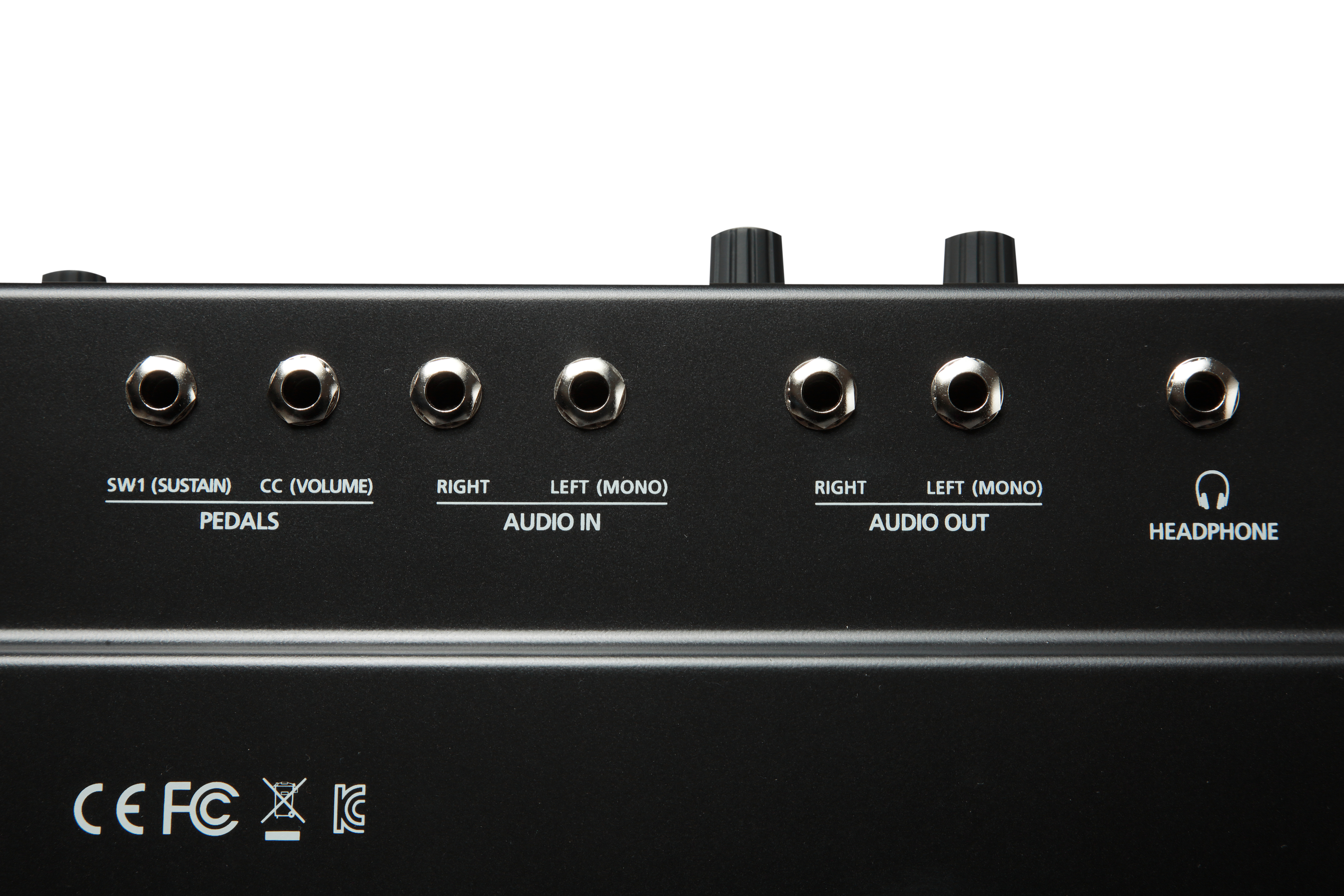 - 2 входа для педалей сустейна и экспрессии, выход для наушников