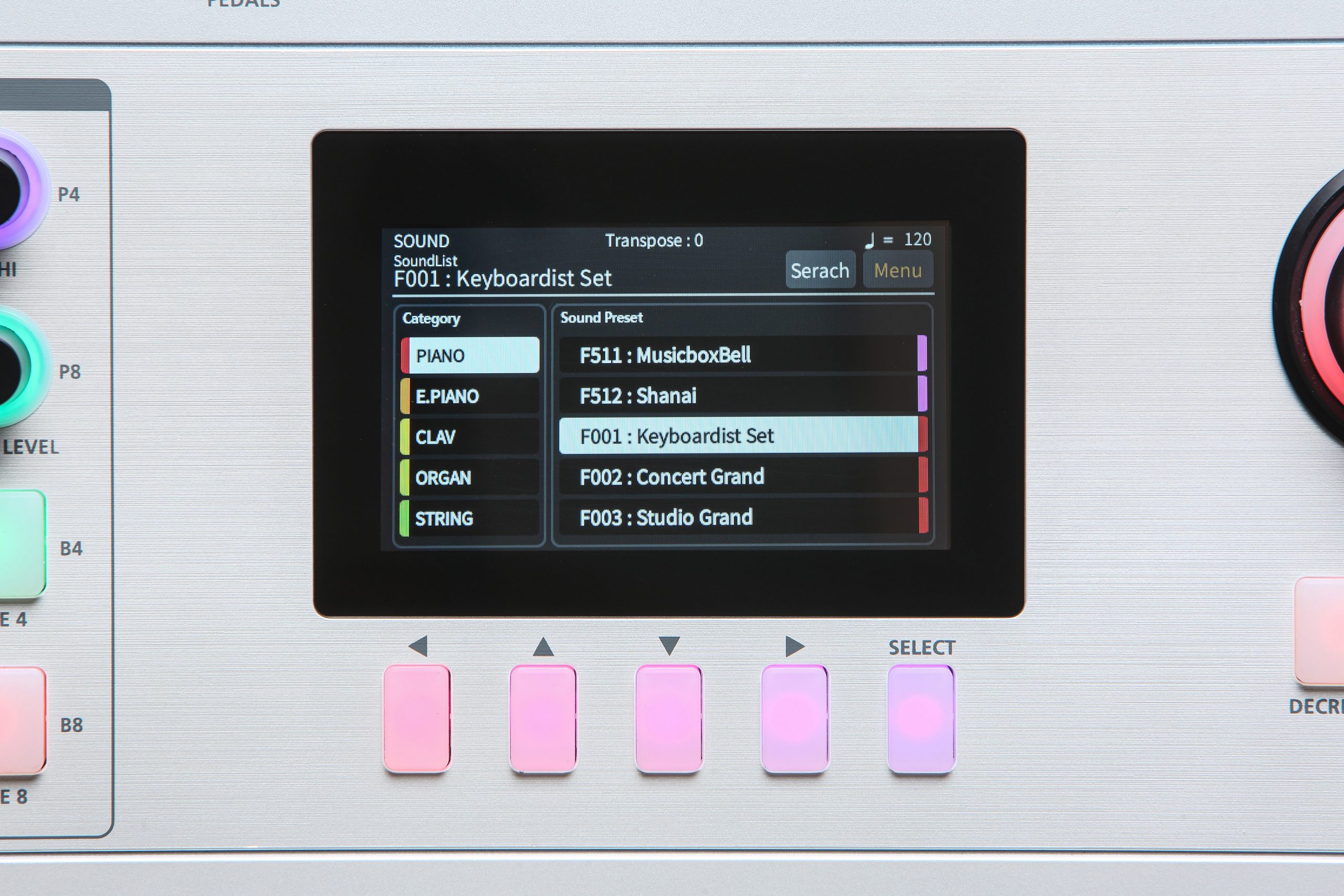 - Authentic Timbre Synthesis Technology (A.T.S.T.): Обновленный тон-генератор A.T.S.T. поддерживает 256-голосную полифонию и предоставляет 512 мульти-пресетов в 13 категориях, включая разнообразные фортепианные, синтезаторные и уникальные альтернативные звуки.
