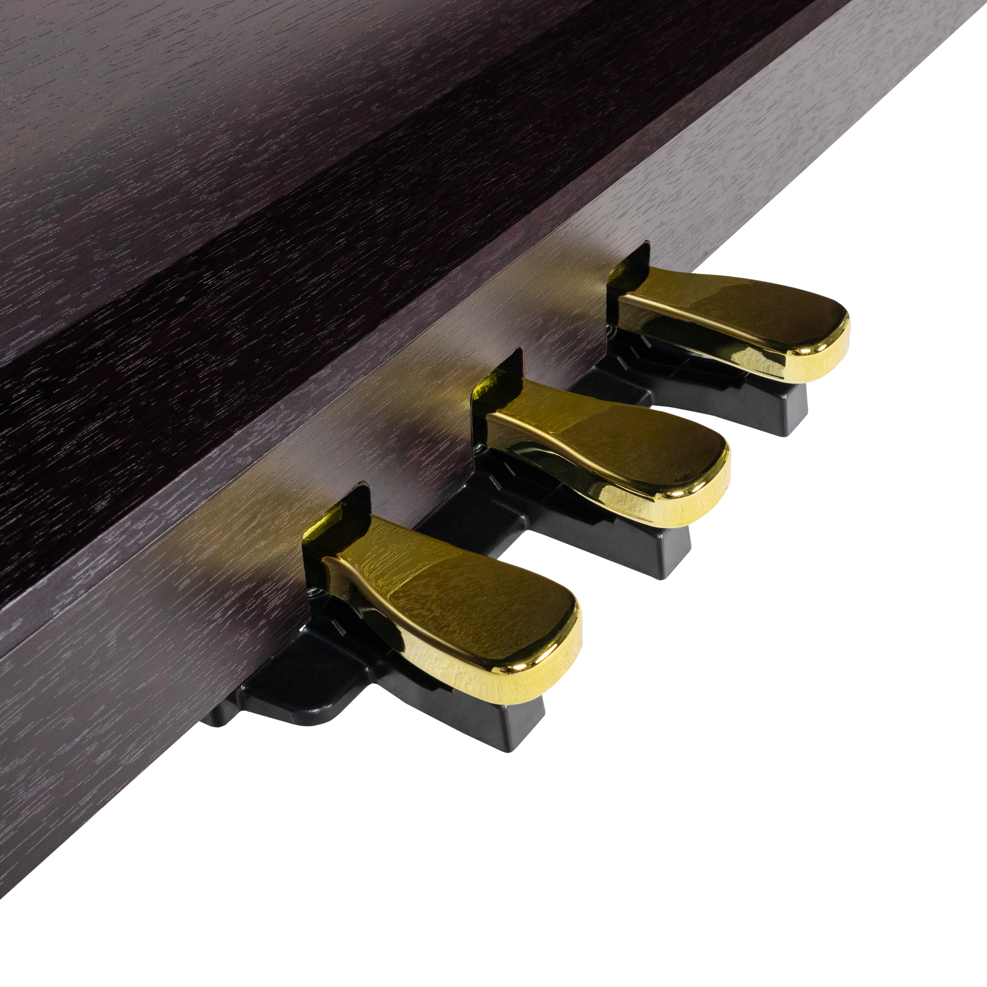 - Блок из трех педалей в комплекте: педальный блок аналогичен акустическому фортепиано. Это позволяет почувствовать все возможности музыкального инструмента, что особенно важно для начинающих музыкантов и позволяет сформировать правильные навыки игры.