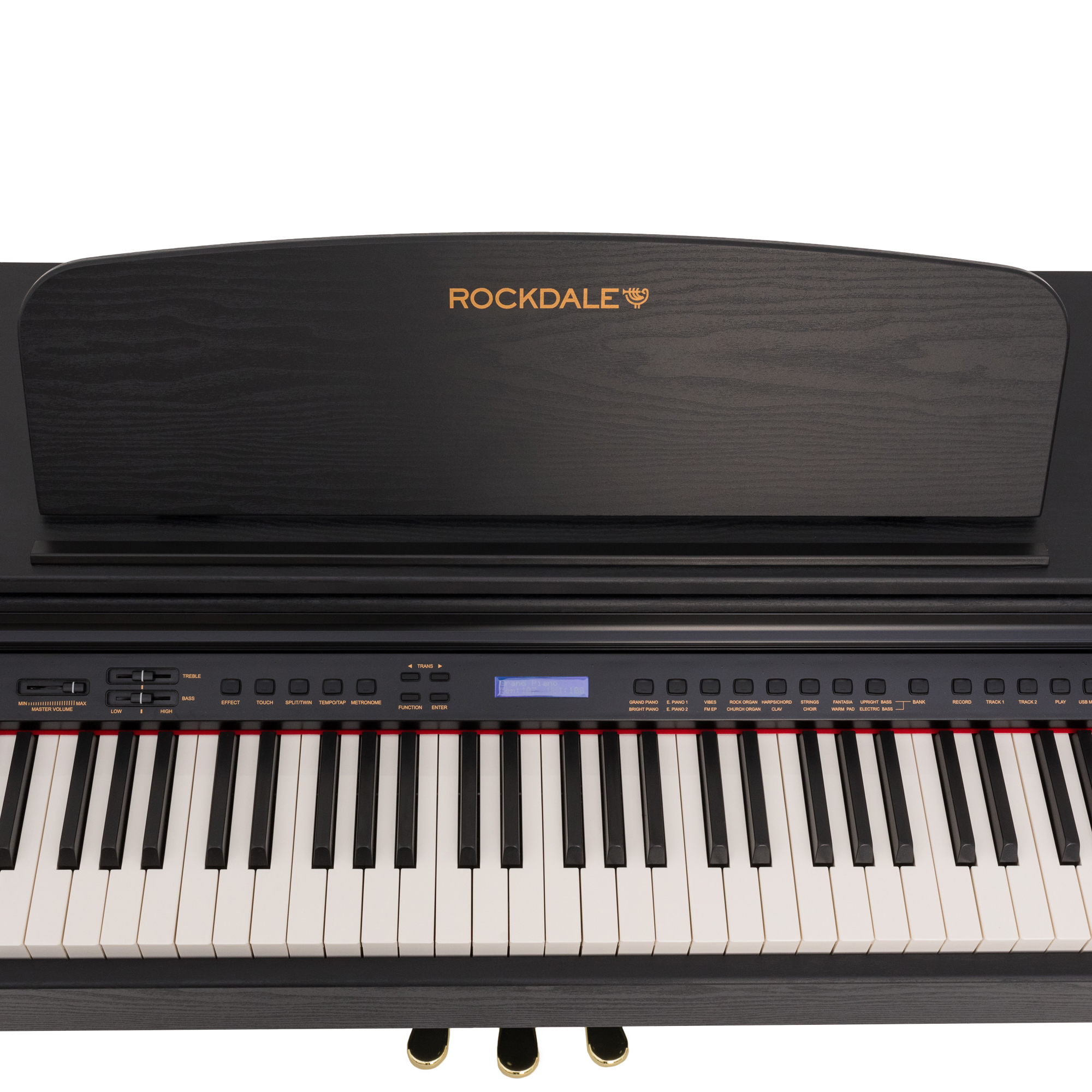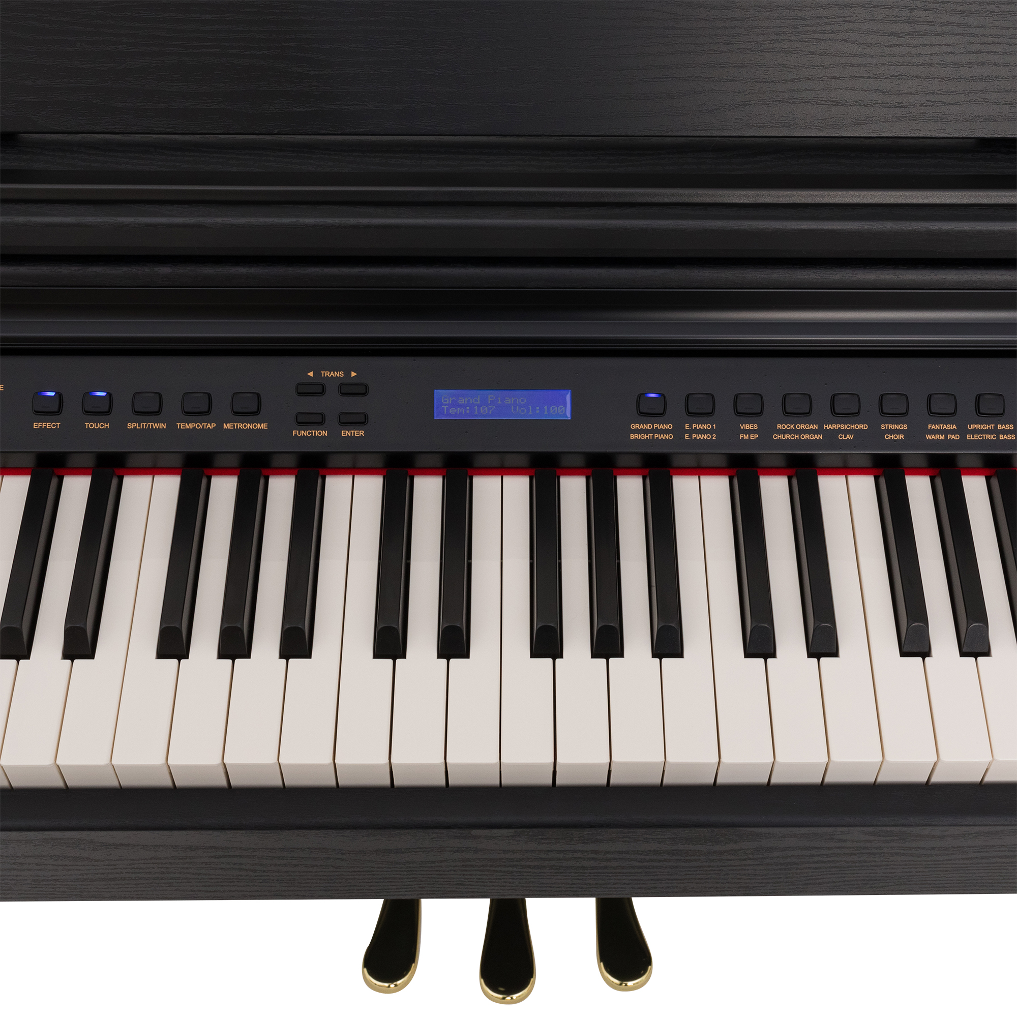 - Полноразмерная градуированная молоточковая клавиатура 88 клавиш: вес клавиши меняется в зависимости от диапазона, аналогично тому, как в акустическом инструменте меняется размер и вес молоточка.