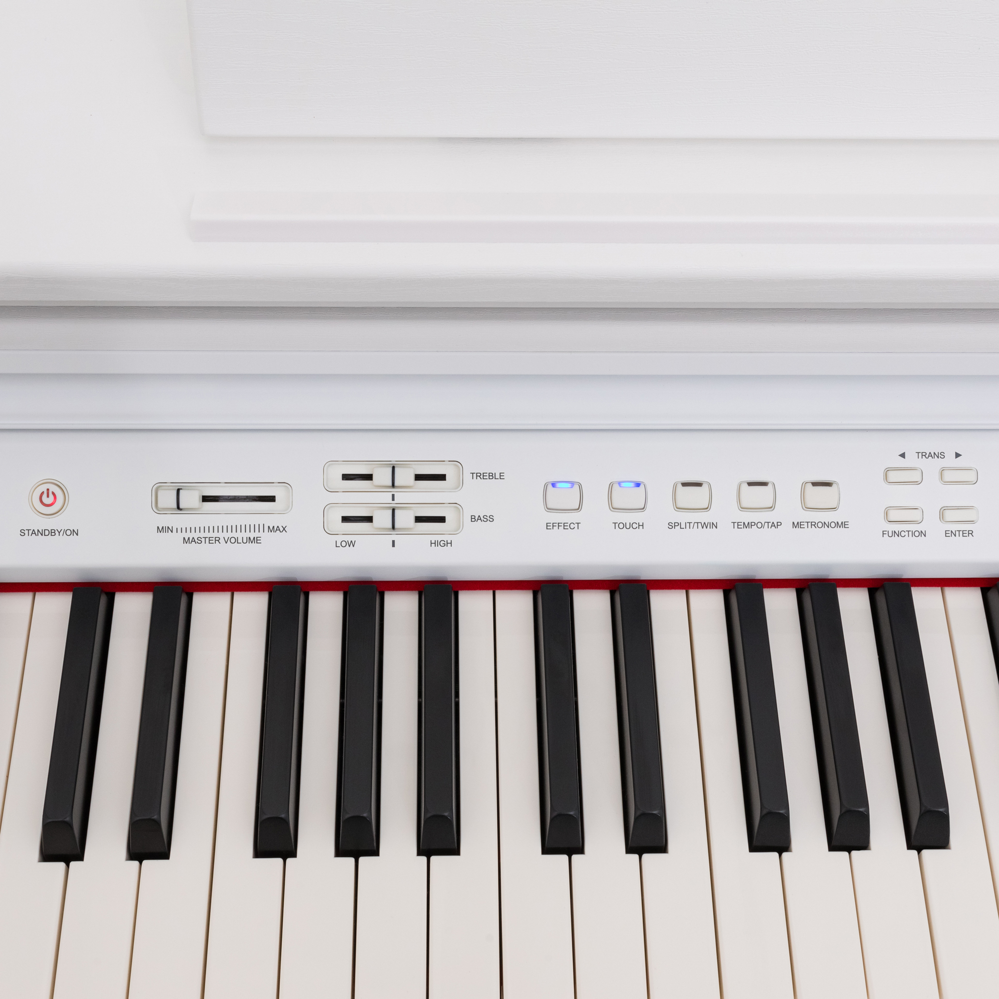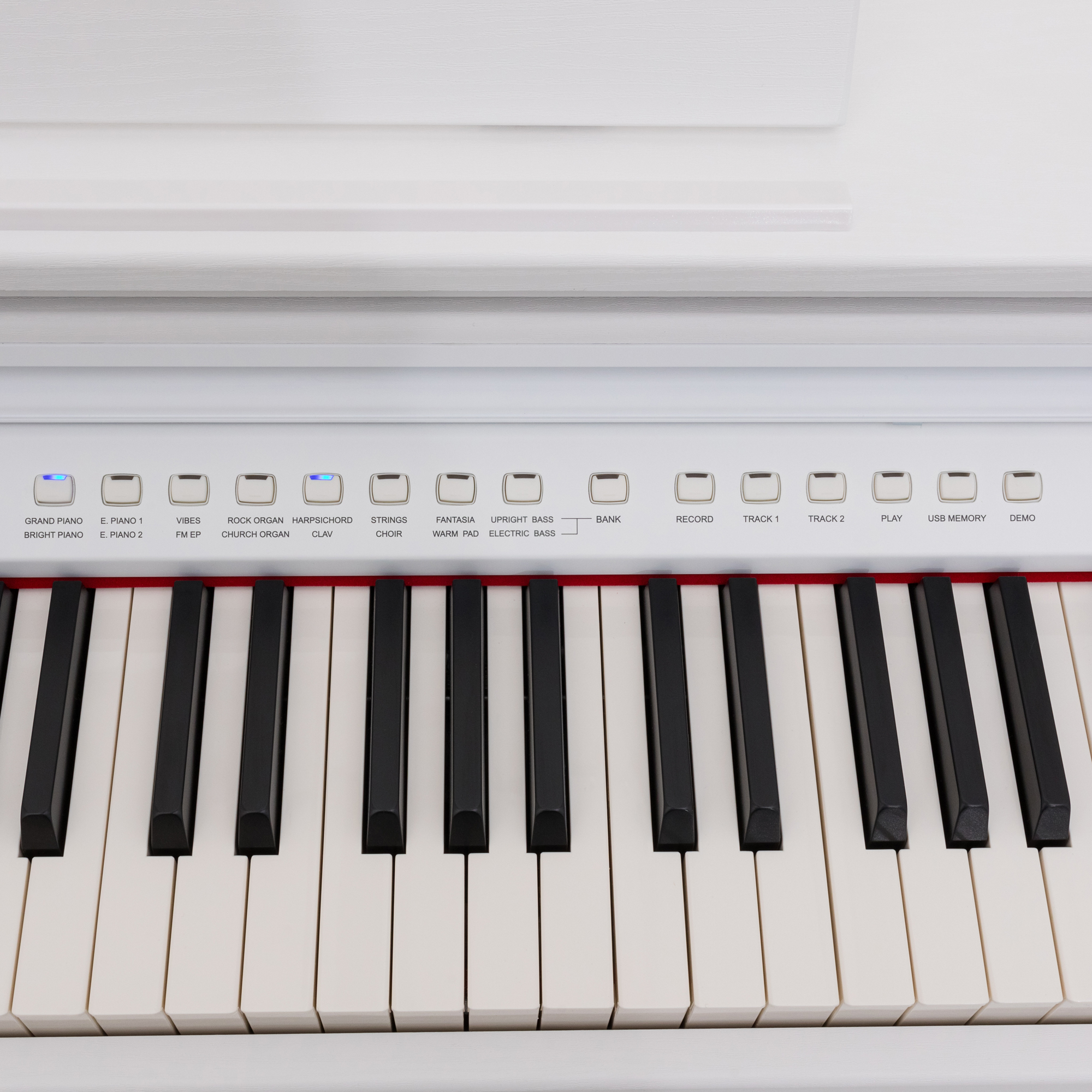 - Классический дизайн: фортепиано выполнено в изысканном белом цвете и станет украшением любого интерьера.