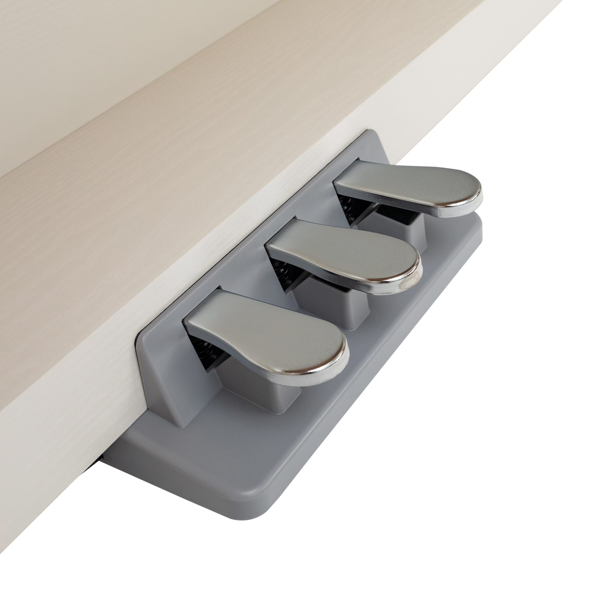 - Блок из трех педалей в комплекте: педальный блок аналогичен акустическому фортепиано. Правая педаль (сустейн) продлевает звук, левая педаль (софт) делает тембр инструмента мягче и тише, а средняя педаль (состенуто) позволяет продлевать только отдельные звуки. Это позволяет почувствовать все возможности музыкального инструмента, что особенно важно для начинающих музыкантов и позволяет сформировать правильные навыки игры.