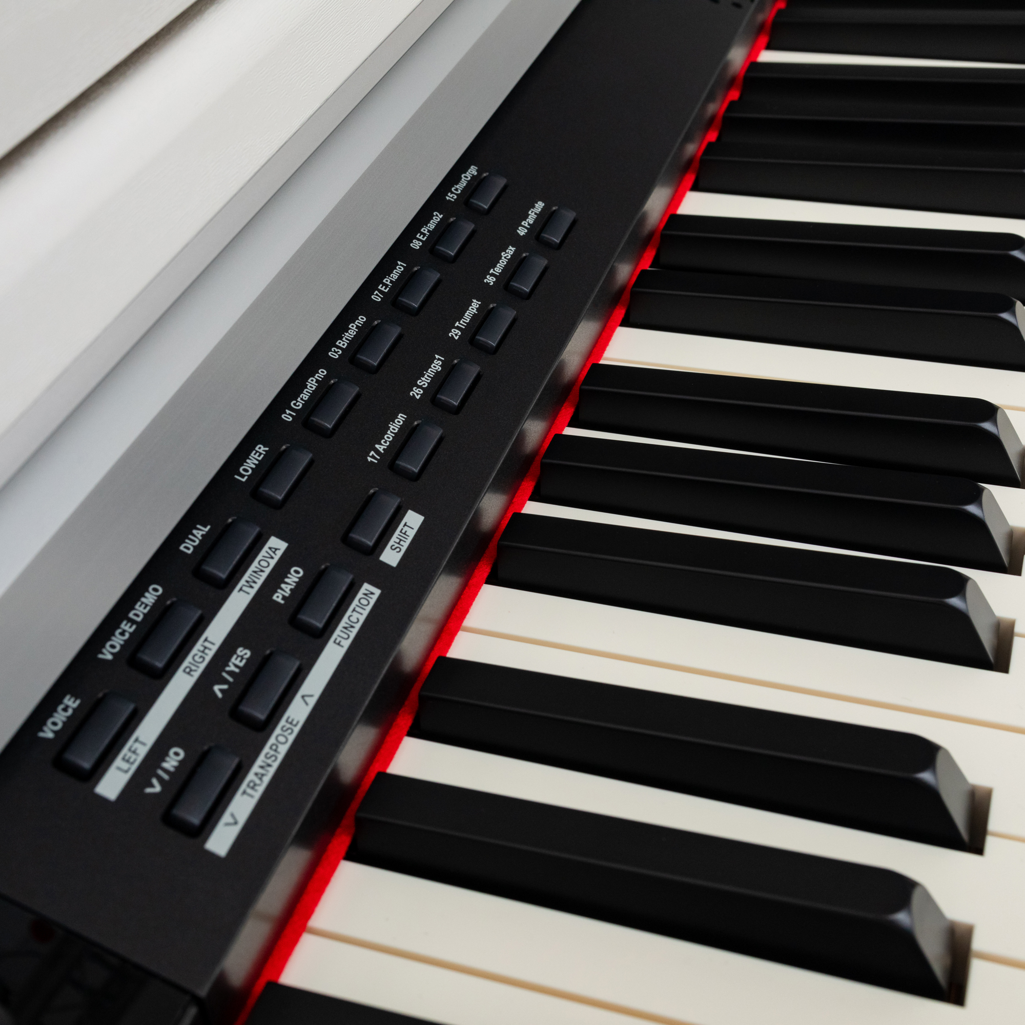 - Классический дизайн: фортепиано выполнено в элегантном белом цвете и станет украшением любого интерьера.
