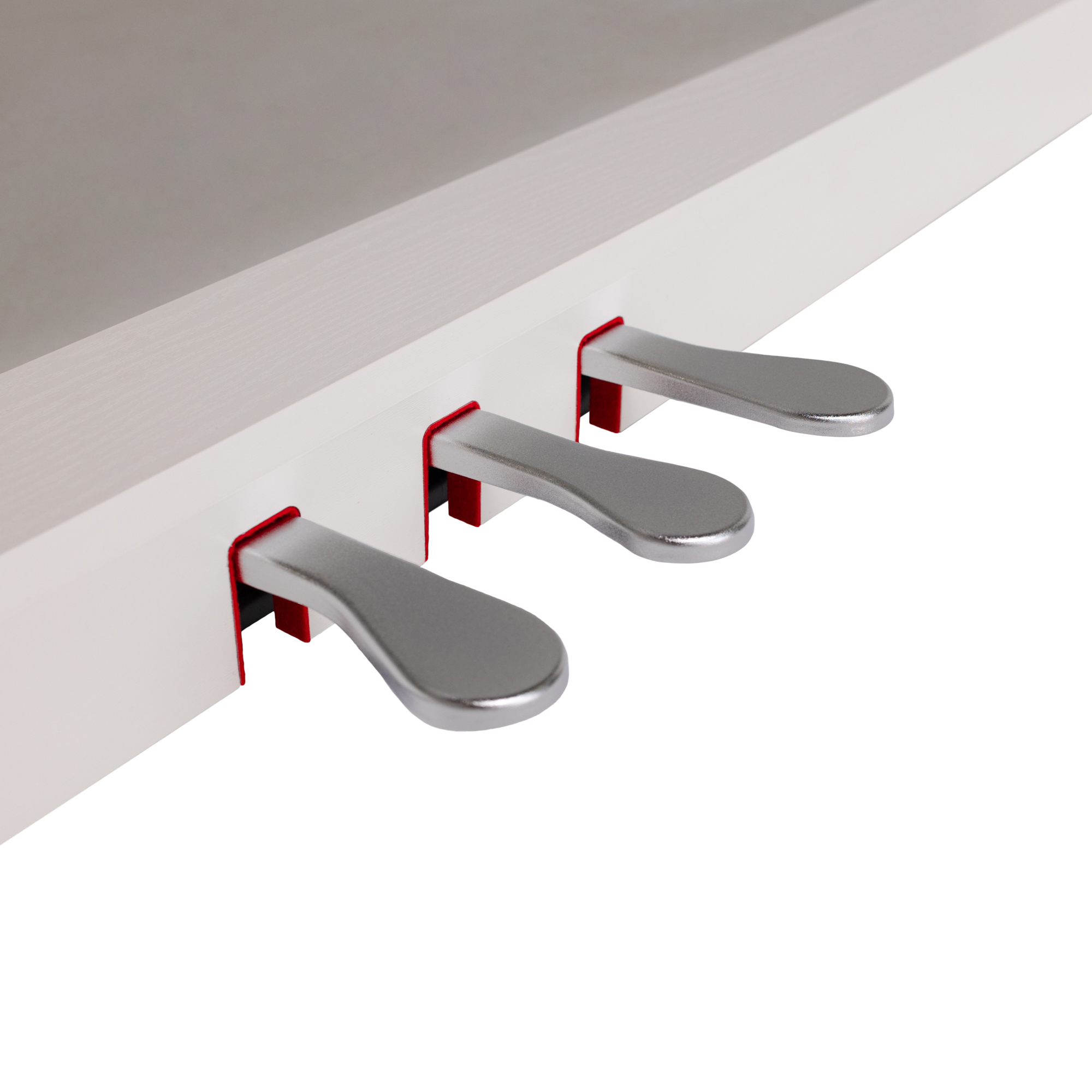 - Блок из трех педалей в комплекте: педальный блок аналогичен акустическому фортепиано. Это позволяет почувствовать все возможности музыкального инструмента, что особенно важно для начинающих музыкантов и позволяет сформировать правильные навыки игры.