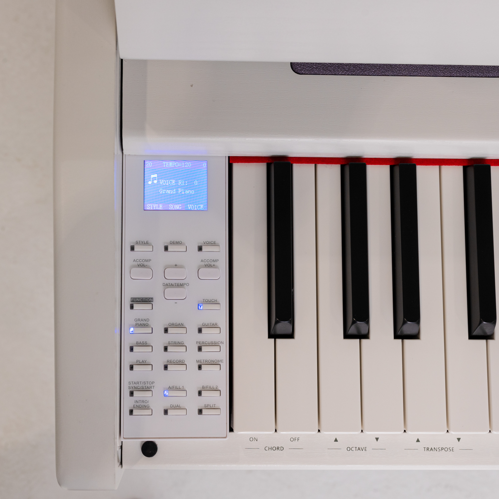- Стильный дизайн: пианино выполнено в изысканном белом цвете и станет украшением любого интерьера.