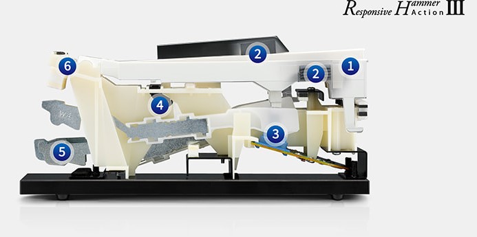 - 88-клавишная клавиатура с молоточковой механикой RHC III