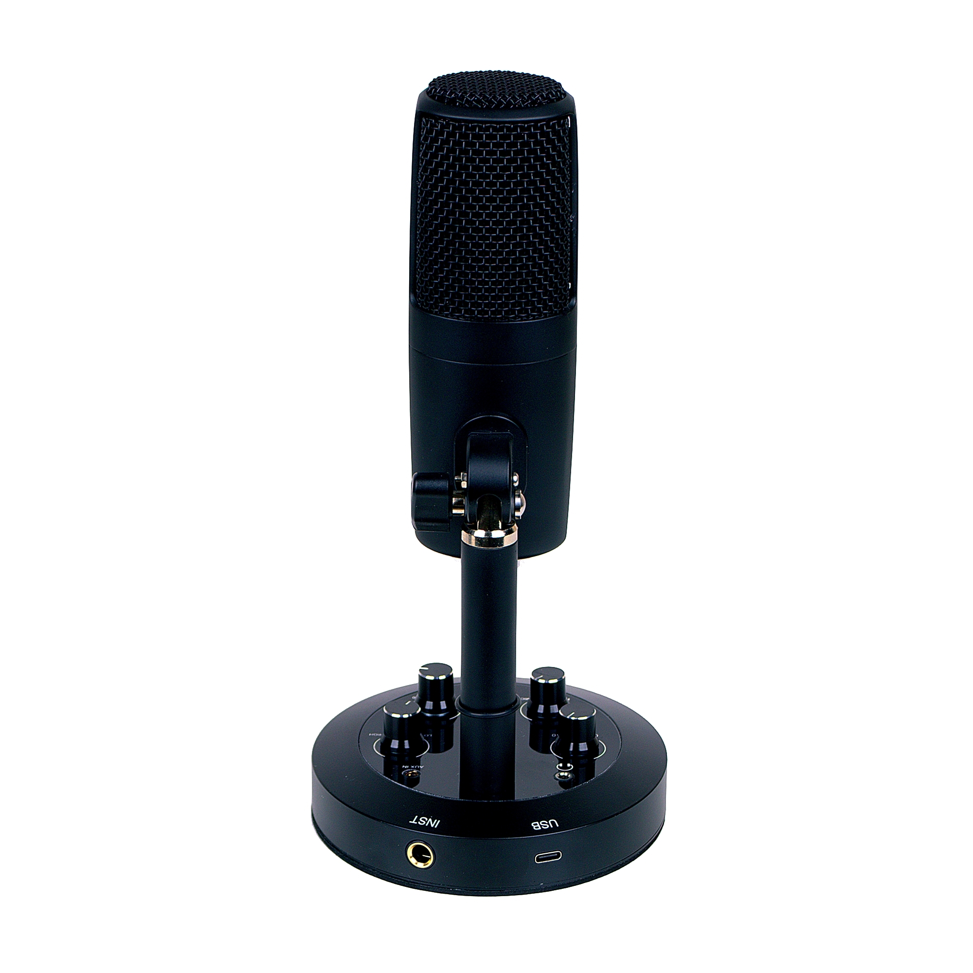 Микрофон представляет собой полноценный аудиоинтерфейс с 2 аудио входами (AUX и Instrumental). Энкодер PC/MIC позволяет 'подмешивать' к прямому сигналу микрофона сигнал с Вашего PC, тем самым, Вы можете обойтись без внешнего микшера и управлять сигналами непосредственно с интерфейса микрофона.
