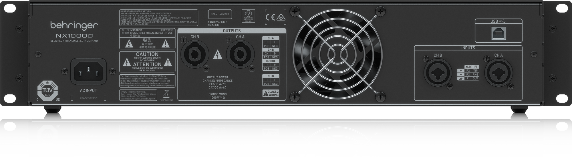Behringer NX1000D имеет большую мощность, обширный функционал, обладает легким весом и компактным корпусом, что позволяет рекомендовать устройство для студийных и концертных условий. Усилитель практически не имеет собственного шума, работает с сигналами с разным сопротивлением, имеет защиту от перегрева и перегрузки, а также потребляет малую мощность 150 Вт.