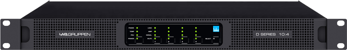 Профессиональный усилитель мощности Lab.gruppen D 10:4L представлен в прочном стальном корпусе рэкового формата 1U и оснащен технологиями защиты от очень высоких частот, постоянного тока, короткого замыкания и перегрева. Также присутствуют ограничители среднего тока и напряжения. На лицевой панели располагаются цветные индикаторы статуса работы и уровня громкости, а также кнопки Mute. Энергообеспечение осуществляется от сети.
