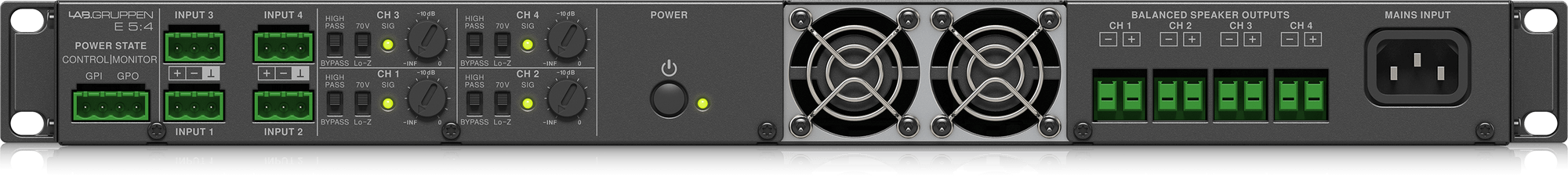 Lab.gruppen E 5:4 является профессиональным усилителем мощности, отличающимся высокими техническими характеристиками, возможностью коммутации и полезной работы с различного рода устройствами, а также простым и удобным интерфейсом. Корпус модели представляет собой прочную алюминиевую конструкцию рэкового формата высотой 1U.