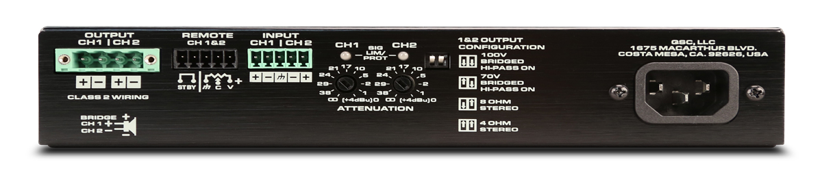 На фронтальной панели QSC SPA2-200 расположены основные светодиоды, включая индикацию работы встроенного лимитера и наличия сигнала: все раздельные для каждого из двух каналов. Входы и выходы у усилителя выполнены на колодках Euroblock. Там же расположен пятиконтактный разъем для подключения устройств удаленного контроля и две канальных ручки регулировки уровня. Корпус выполнен из металла с литой фронтальной панель, а жесткие металлические же крепления добавляют прочности конструкции. Усилитель обладает сертификатом соответствия Energy Star, что означает высокую энергоэффективность и отсутствие необходимости в активном охлаждении. С этой технологией связана и другая, под названием Auto-Ramp: благодаря ей возможны бесшумный запуск и отключением энергопотребления через 28 минут. Наконец, интегрирована полная защита схем от замыкания, перегрева, ультразвука и радиочастотных помех.
