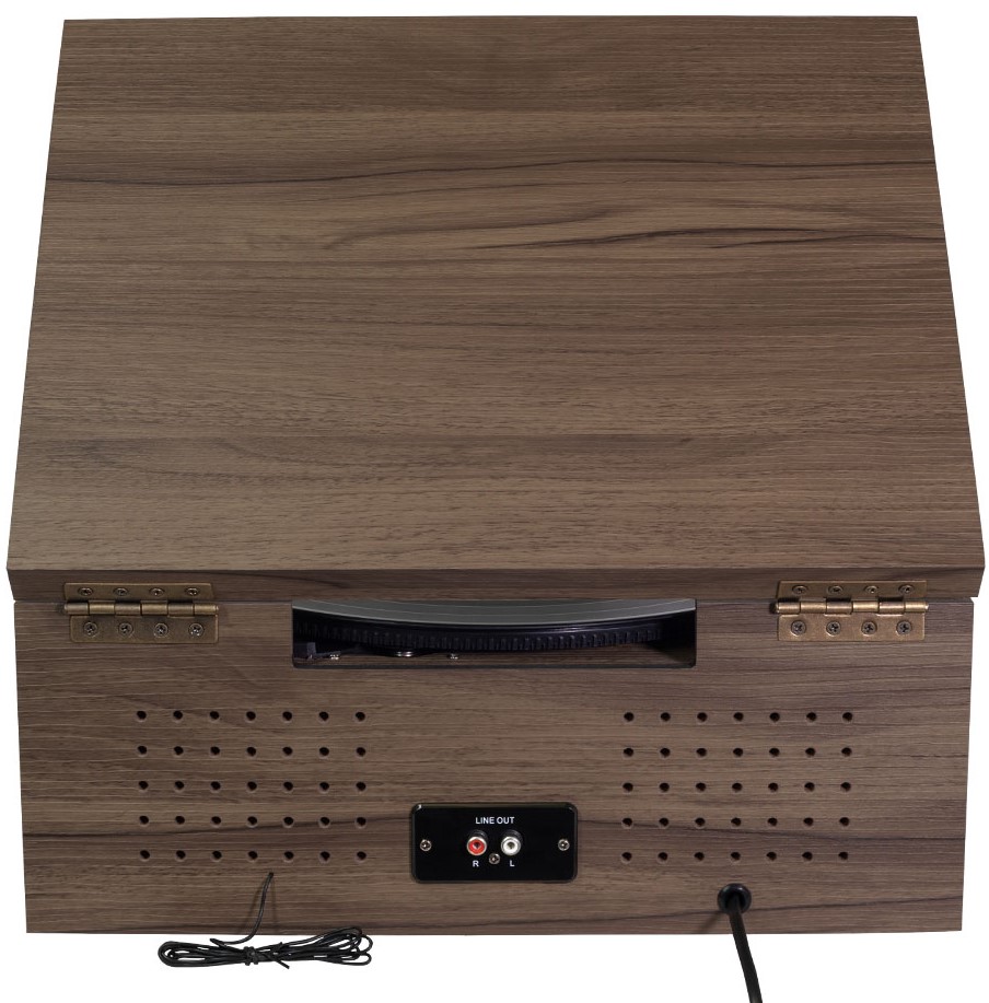 Проигрыватель оснащен встроенным Bluetooth версии 5.0, позволяющий воспроизводить любимую музыку прямо с вашего смартфона на виниловом проигрывателе. С помощью выхода-RCA, можно подключить активные внешние стереодинамики для большей мощности и полного погружения в аналоговое звучание. Вы можете прослушивать музыку со своего аудио источника (МР3 плеера, смартфона, CD плеера и т.д.) подключив их через линейный вход AUX (Line-in) и воспроизводить музыку через встроенные динамики проигрывателя.