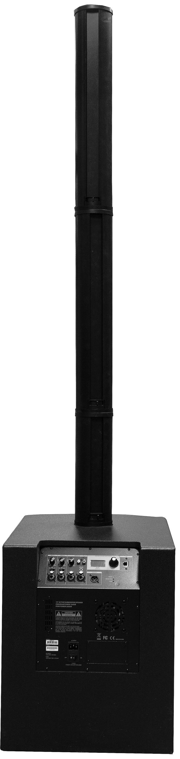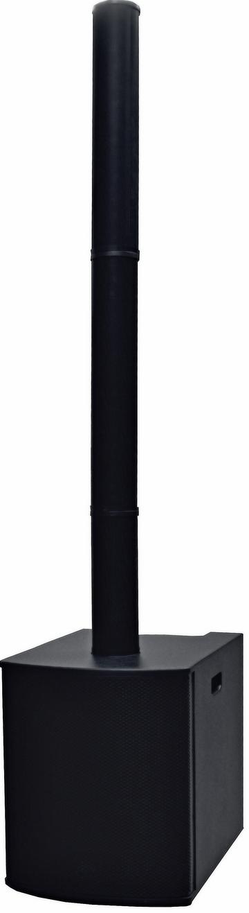 Нижняя часть колонны используется в качестве опоры для двух верхних сателлитов. Сабвуфер оснащен двумя усилителями класса D мощностью 1000 Вт. Все элементы управления, входы и выходы расположены на задней панели сабвуфера. Доступны 4 x микрофонных / линейных входа на разъем Combo XLR / и одного разъема RCA . Система оснащена встроенным DSP с такими программами, как LIVE / MUSIC / SPEECH / DJ. OLED-экран позволяет редактировать параметры, а также подключаться к ПК по локальной сети. В качестве источников сигнала доступны дополнительные модули MP3 и Bluetooth с дальностью работы до 10 метров.