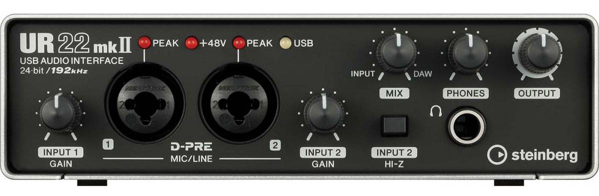 - Аудиоинтерфейс - Steinberg UR22mkII, 2х2, с двумя комбинированными входами XLR/TRS и двумя выходами на 1/4" TS Jack, микрофонными предусилителями и в металлическом корпусе