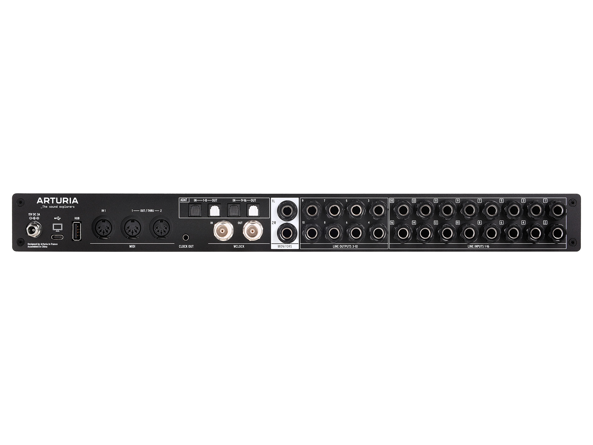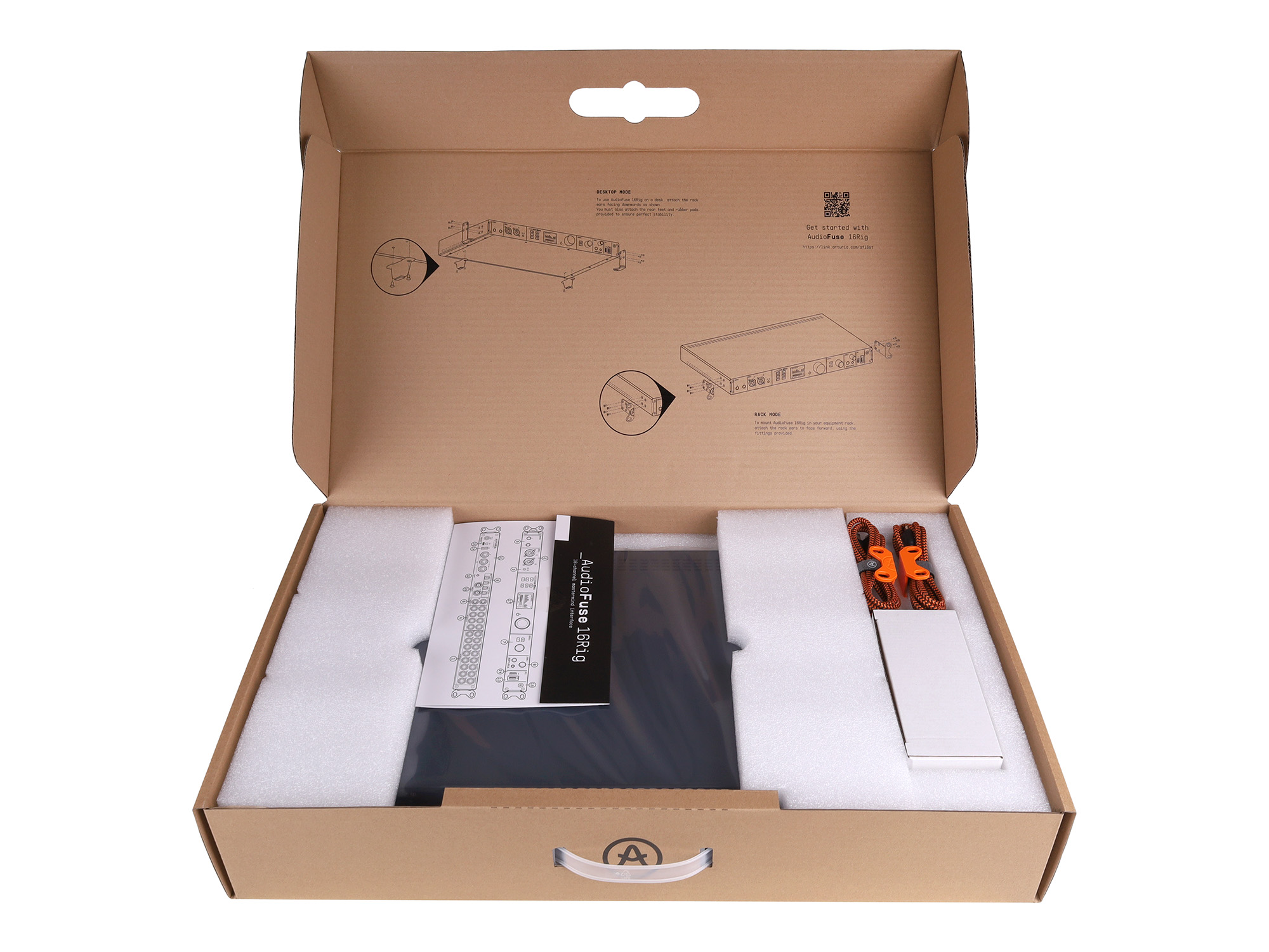 Подключение к компьютеру осуществляется по USB-C, кроме того есть USB-A-хаб для периферии, два MIDI-DIN порта (IN, OUT/THRU), Word Clock I/O и возможность посылать CV на внешние синты. Устройство можно использовать на столе или устанавливать в стойку — благодаря съемным ушам. В комплекте ПО AudioFuse Control Center и Creative Suite с плагинами Analog Lab Intro, Delay TAPE-201 и другими.
