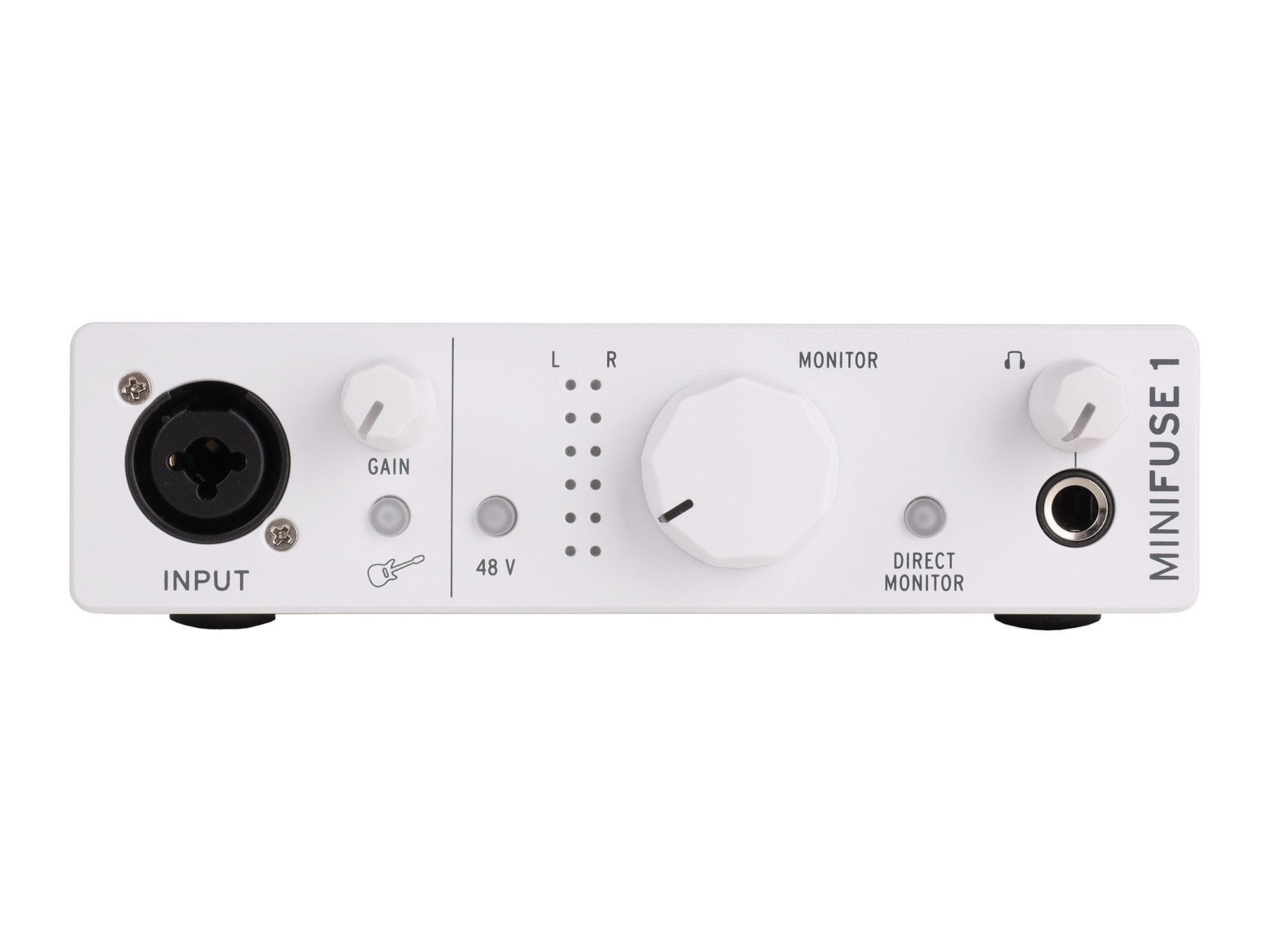 Данная версия оснащена лишь одним входным каналом, представленным разъемом Combo Jack/XLR, к которому можно подключать микрофонные, линейные и инструментальные источники сигналов. Этот вход имеет качественный микрофонный предусилитель, способный усилить сигнал до +56 дБ, функцию подачи фантомного питания +48 В и возможность включения высоокомного режима для электрогитар. Кнопки для последних двух действий оборудованы цветной подсветкой, а регулятор усиления для входного канала также имеет цветную индикацию уровня сигнала. Рядом с ними располагается 6-сегментная индикация выходного уровня, кнопка включения мониторинга без задержки, а также выход для наушников на разъеме 1/4" Jack TRS.