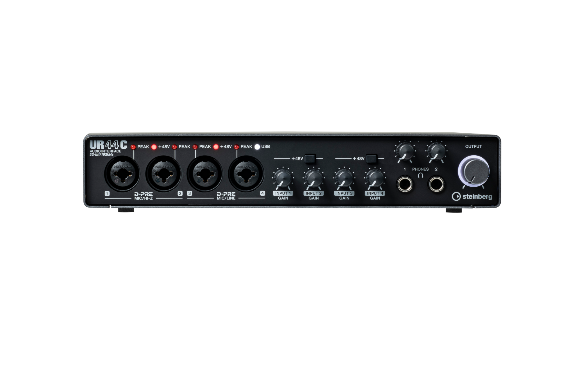 Steinberg UR44C представляет собой качественный USB-аудиоинтерфейс, имеющий самое современное техническое оснащение, позволяющее записывать и воспроизводить звук в самых высоких форматах, среднее количество входов и выходов, а также поддержку наиболее быстрых интерфейсов для передачи данных. Корпус карты представлен в виде прочной металлической конструкции. В комплекте поставляется адаптер питания, кабель USB-A to USB-C длиной 1 метр, а также лицензионный ключ для активации программы для записи и сведения Cubase AI.